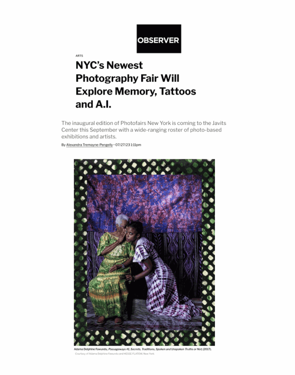 Adama Delphine Fawundu September 8 - 10, 2023HESSE FLATOW is pleased to participate in the inaugural edition of PHOTOFAIRS New York with a solo presentation of Adama Delphine Fawundu . Location: Javits...Read more -