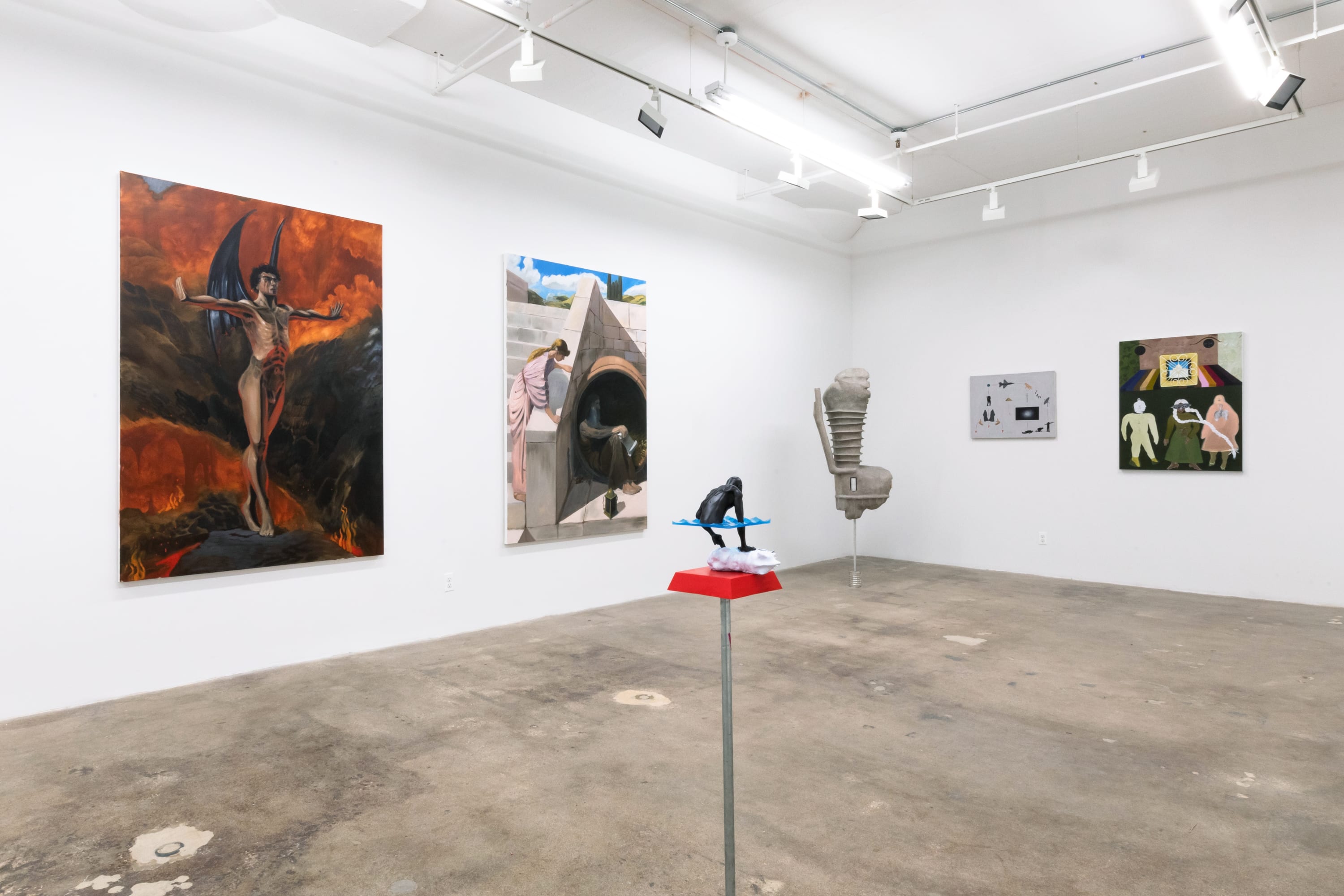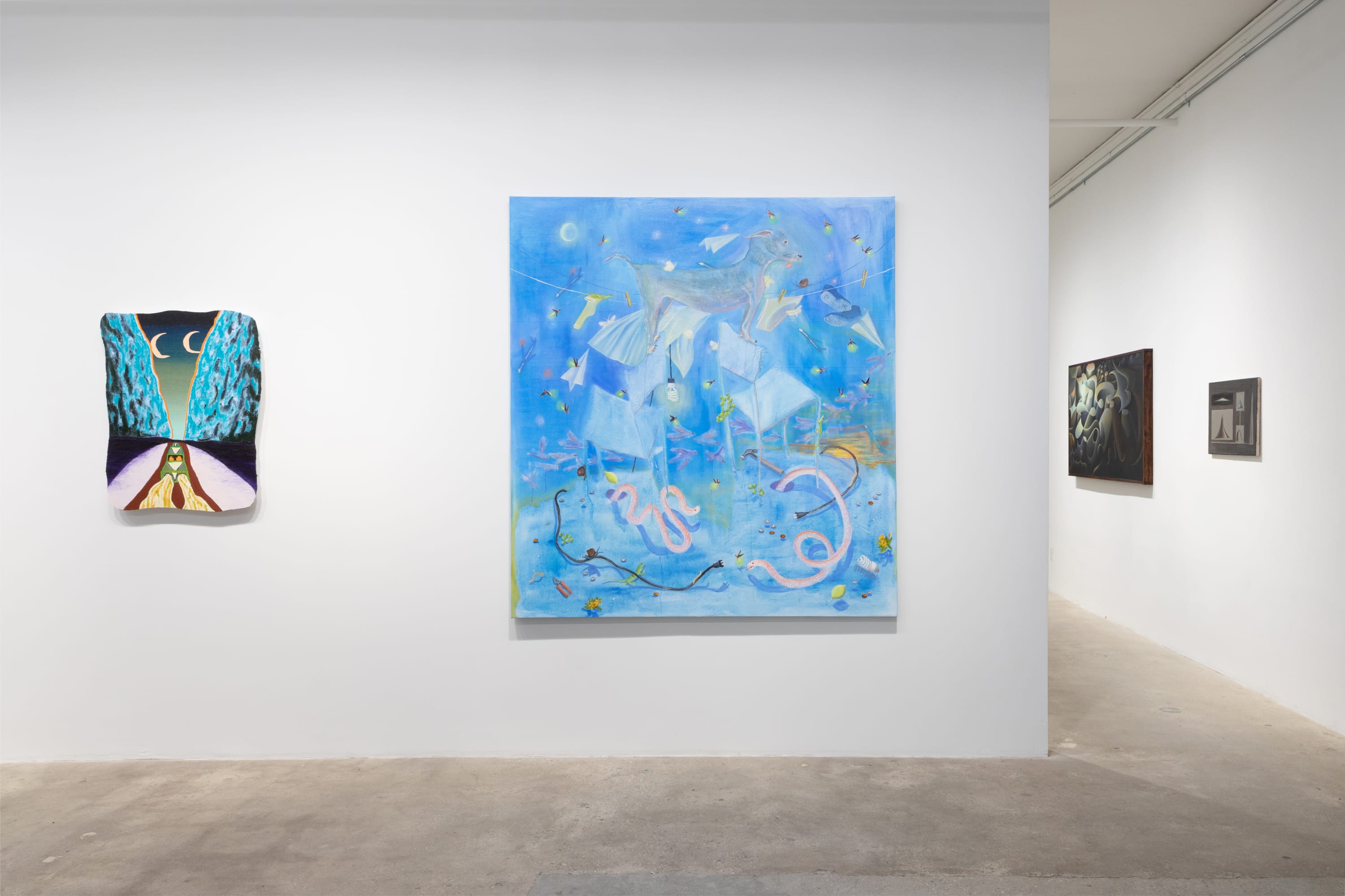 That past resonates with recognitions of the present—we look back into the mirrored glass of a similarly worrying reality, pinging with the delivery of new daily records and colored by the amber alerts of state curfews during protest. Challenging the escapist impulse with criticality and humor, the artists in this show are not dealing in pure abstraction, rather, finding ways to express injustice, trepidation, and hope for the future through new figures, contemporary or invented. Drawing on the symbolic material of popular culture, astrology, the internet, and beyond, this show responds to the expansion of virtual worlds which, as ever, run in tandem with reality.