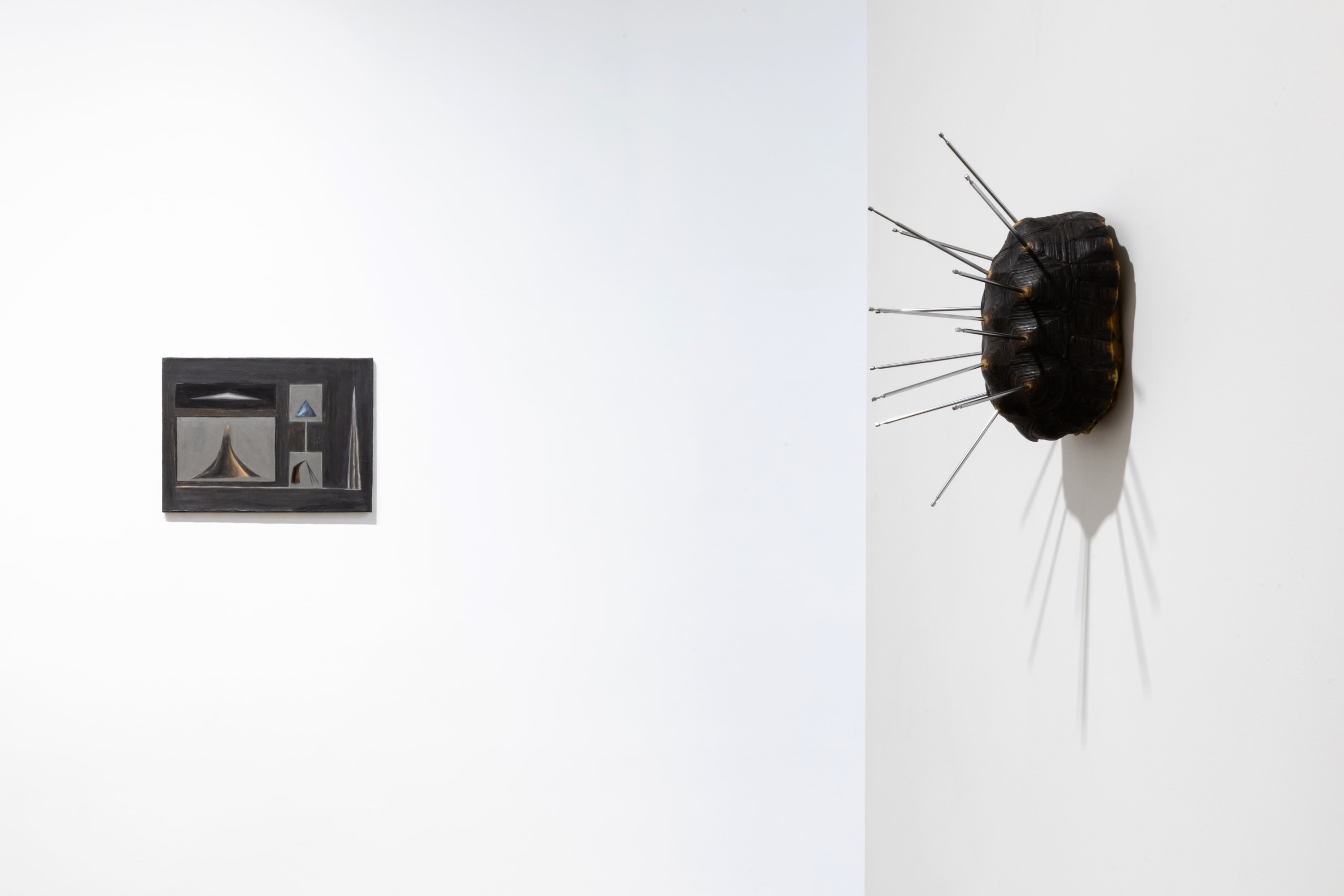 Exene Karros’s graphic compositions and Johanna Robinson’s Tower collect visual resonances, tuning into the likenesses that link forms across religion, technology, and the natural world. Turning to world-building through the familiar materials of our present, Louis Osmosis’s sculptures are spectacular proposals which invite the viewer to imagine the context that gave rise to such objects.