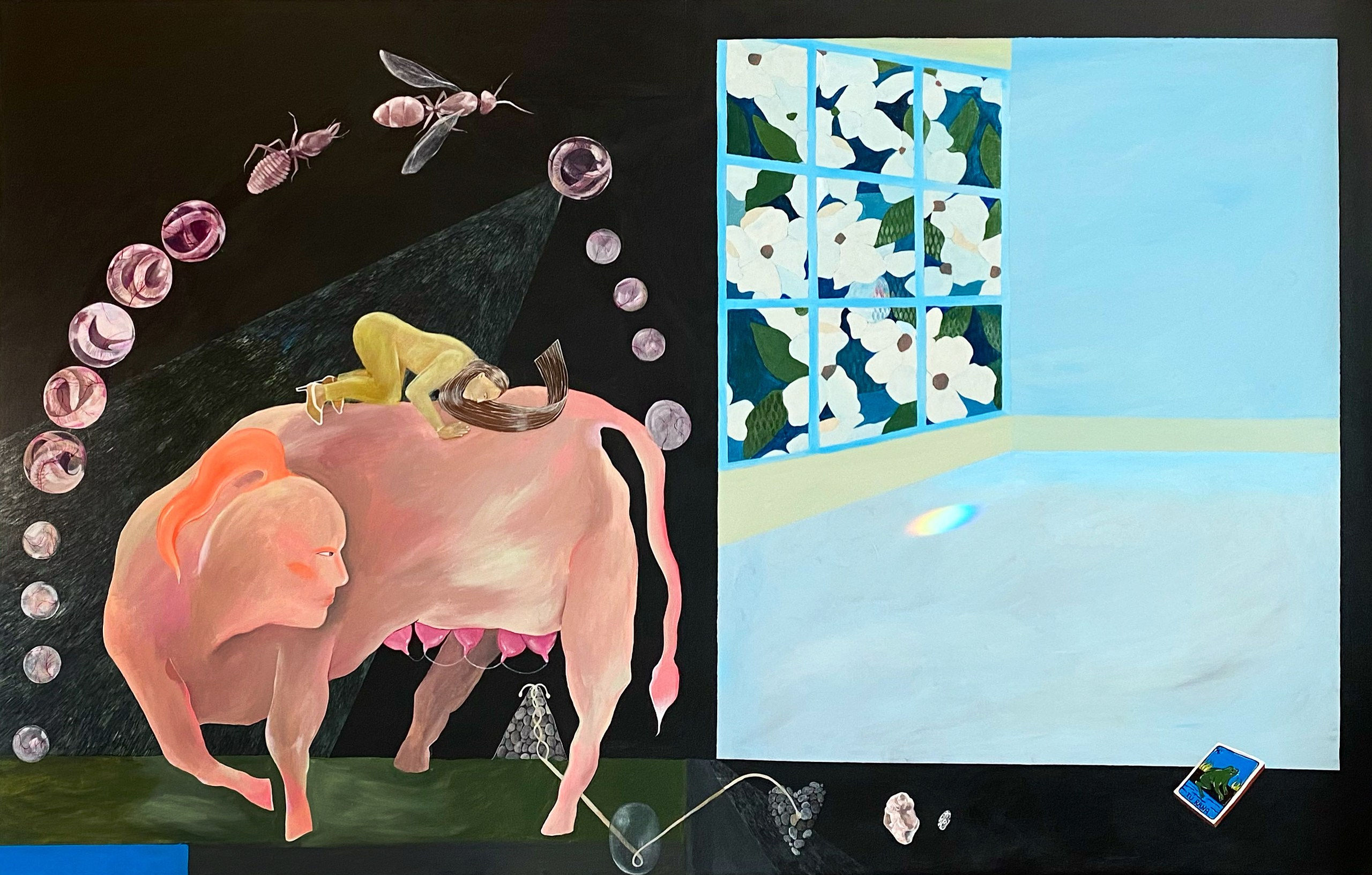 • However, Hilary Doyle’s The Innocents, Johanna Robinson’s Imagination is defined by what lies outside of it, and Astrid Terrazas’s a fruitful being, tú rana, suggest that there can be no such escape—reality and fiction are interchangeable, composed of the infinite imaginaries of our positionalities, desires, and dreads. Doubly representing the immensity of an ocean in a rectangle of blue pastel and the sluggish action of a fishbowl brimming with glycerin, Maho Donowaki’s I’ll Swim If You Swim Too humorously indicates the futility in the search for an unmediated reality.